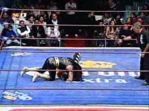 Psicosis II is currently Ripper/Reaper and he doesn't have the attitude or flair as his predecessor but he's a perfectly competent rudo flyer. Unlike the title match which started the requisite minutes of matwork, this hit the ground running (soaring). Psicosis ran straight into the ring, was rana'd and tope'd. The cameras missed it as they were getting the opening match graphics out of the way. That's how quick it was. Sombra plancha'ed back in, went for another one off the top, and was hit by a Michinoku Driver off the top for a quick fall.